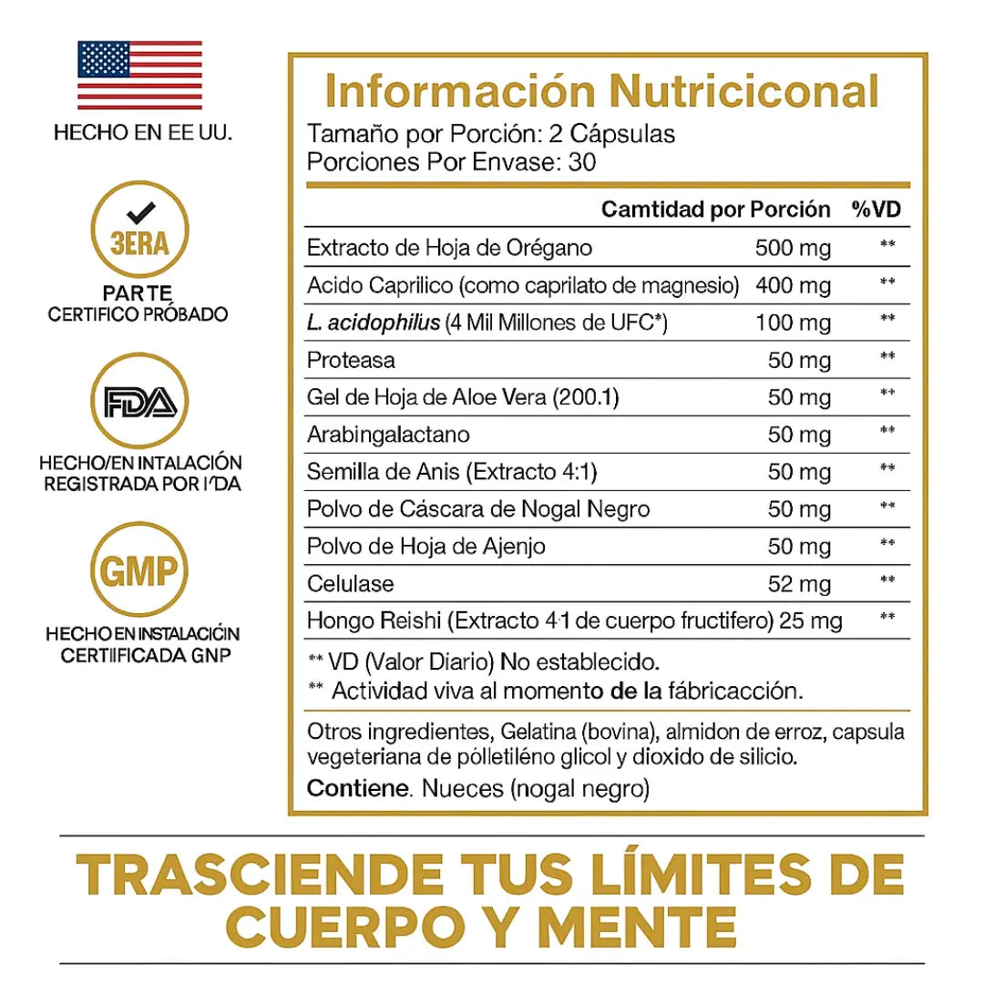 Hemos creado este suplemento combinando extractos naturales y ciencia avanzada para apoyar tu digestión, limpiar tu organismo y favorecer el metabolismo de forma segura y confiable.